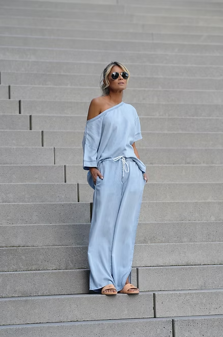Armoirè - Dámská souprava s flitrovým blazerem a širokými kalhotami – 3-dílná a stylová