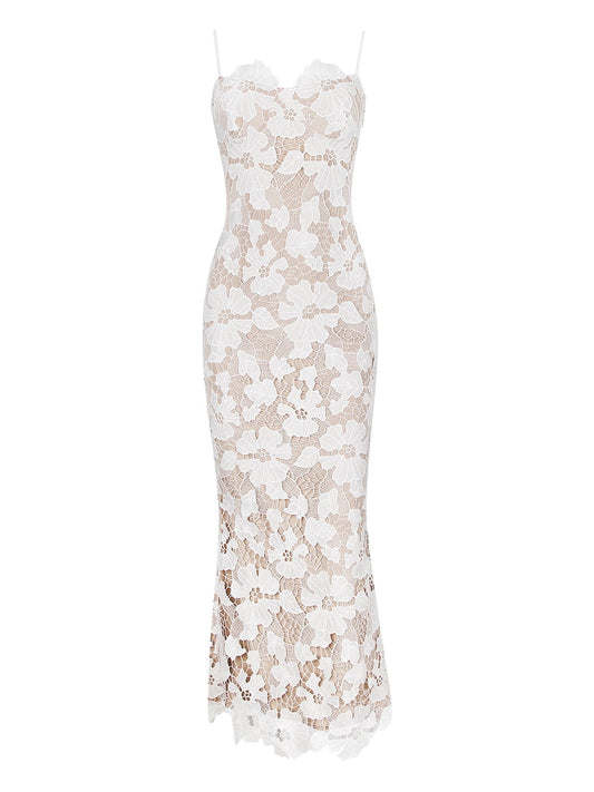 Armoirè Maxi šaty bez zad z krajky s rozparkem