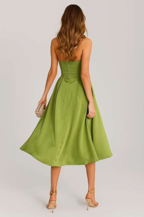 armoire | Šaty bez ramínek s plisováním v jednobarevné barvě