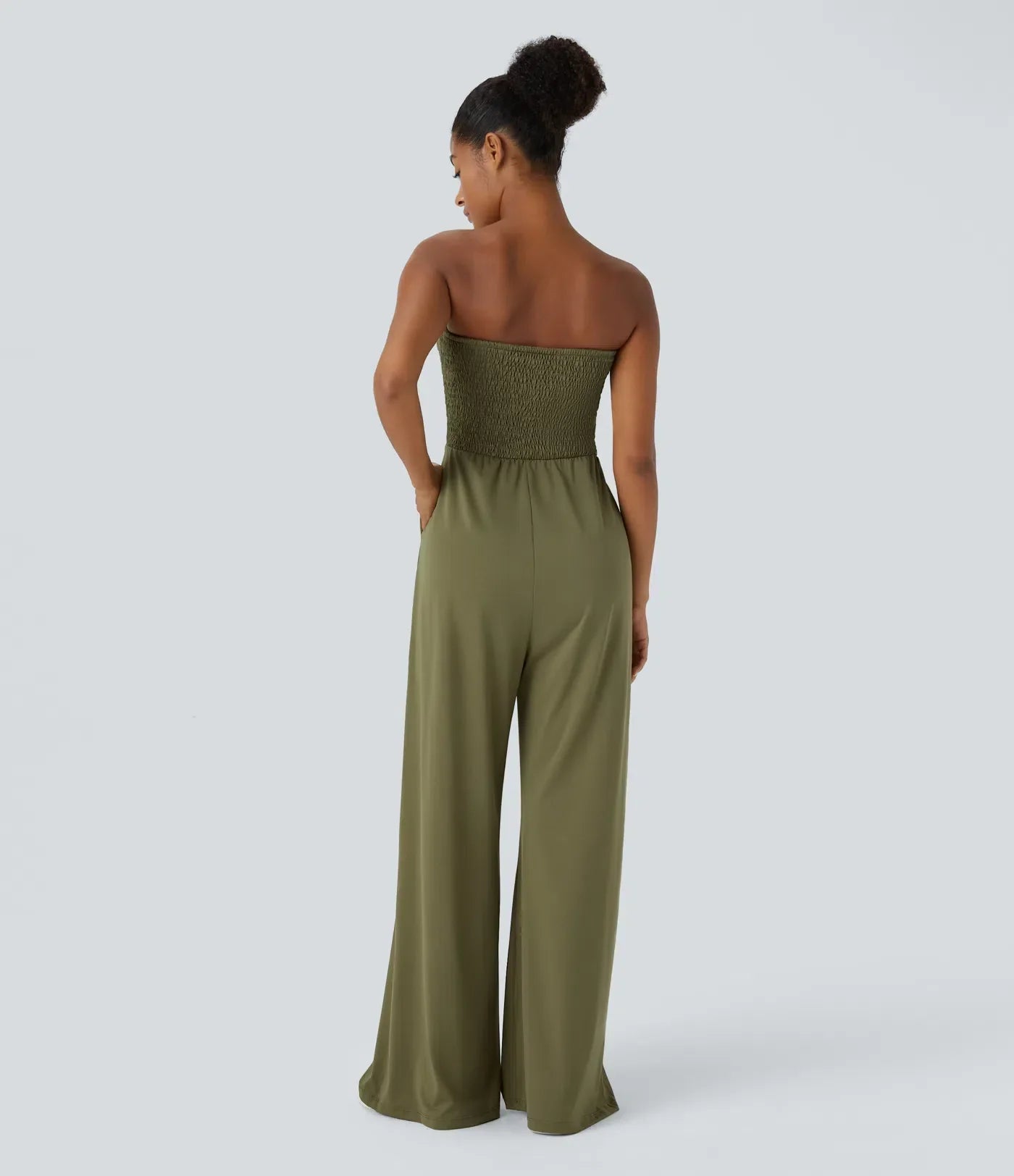 Tento elegantní bandeau jumpsuit spojuje nadčasový styl s nejvyšším pohodlím. Elastický, nařasený top zajišťuje dokonalou oporu a ženskou siluetu, zatímco široká nohavice poskytuje vzdušnou volnost pohybu. Nastavitelný pás zdůrazňuje postavu a zároveň nabízí individuální přizpůsobení. Ideální pro teplé dny, dovolené nebo letní akce.