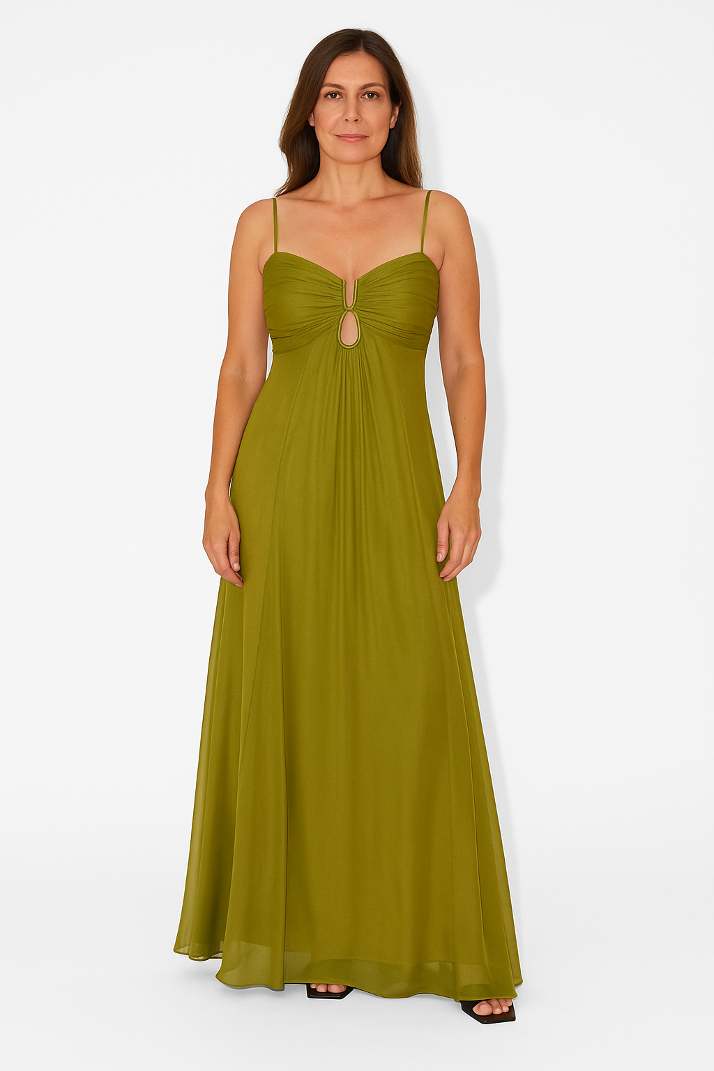 Tento elegantní maxikabát spojuje ženskou rafinovanost s nadčasovým designem. Plynulý materiál zajišťuje lichotivou siluetu a maximální pohodlí při nošení. Díky ramínkům a decentnímu výřezu na dekoltu působí kabát moderně a zároveň elegantně. Ideální pro zvláštní příležitosti, letní večery nebo stylové vystoupení.