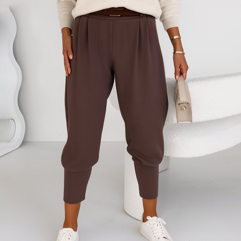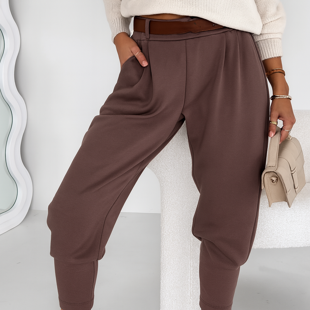 Tyto elegantní béžové kalhoty kombinují styl a komfort – ideální pro ležérní volnočasové outfity a elegantní pracovní oblečení. Kvalitní materiál je jemný na dotek a zajišťuje optimální volnost pohybu. Lichotivý plisovaný design vytváří elegantní siluetu a snadno se kombinuje. Ideální pro ženy, které chtějí vypadat upraveně, aniž by musely obětovat pohodlí.